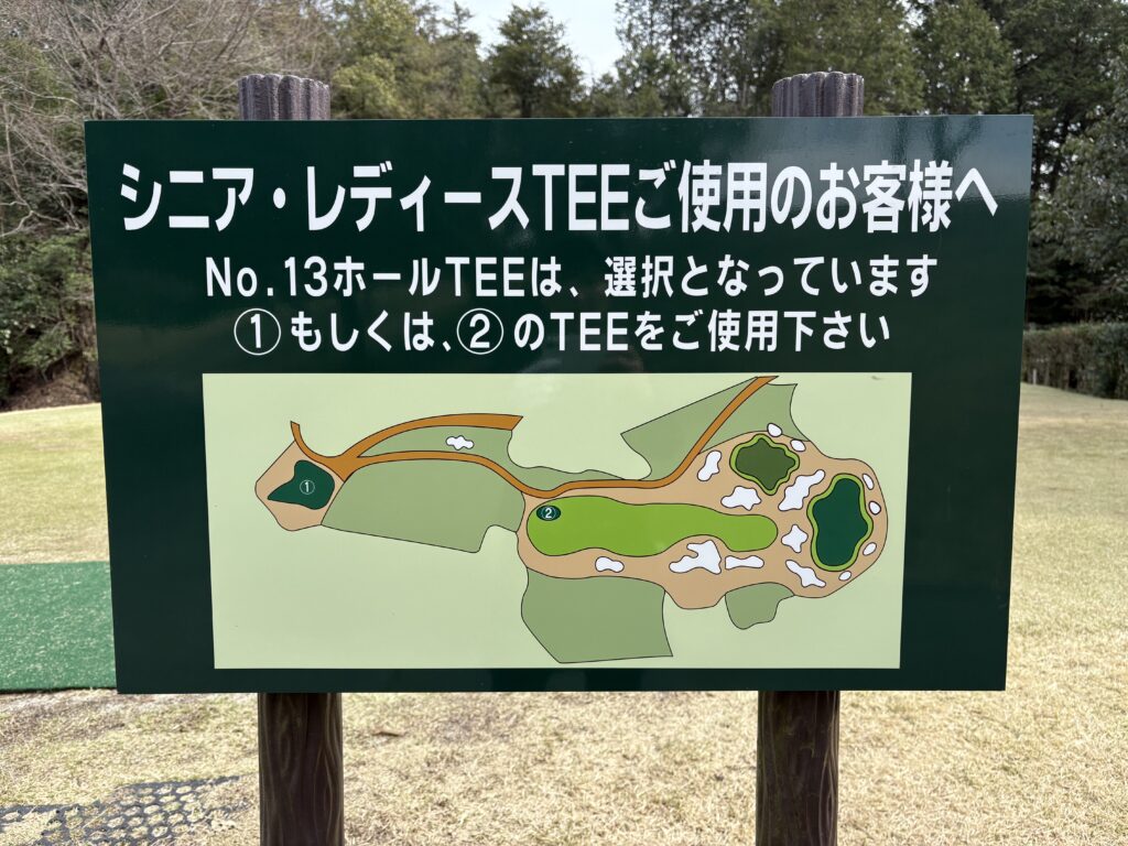 No.13ホールの看板。こちらが目印です。