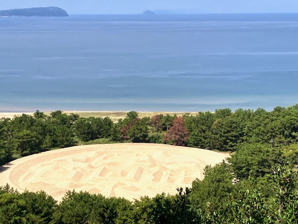 海と緑の中に巨大な「寛永通宝」がくっきりと浮かび上がっていました。