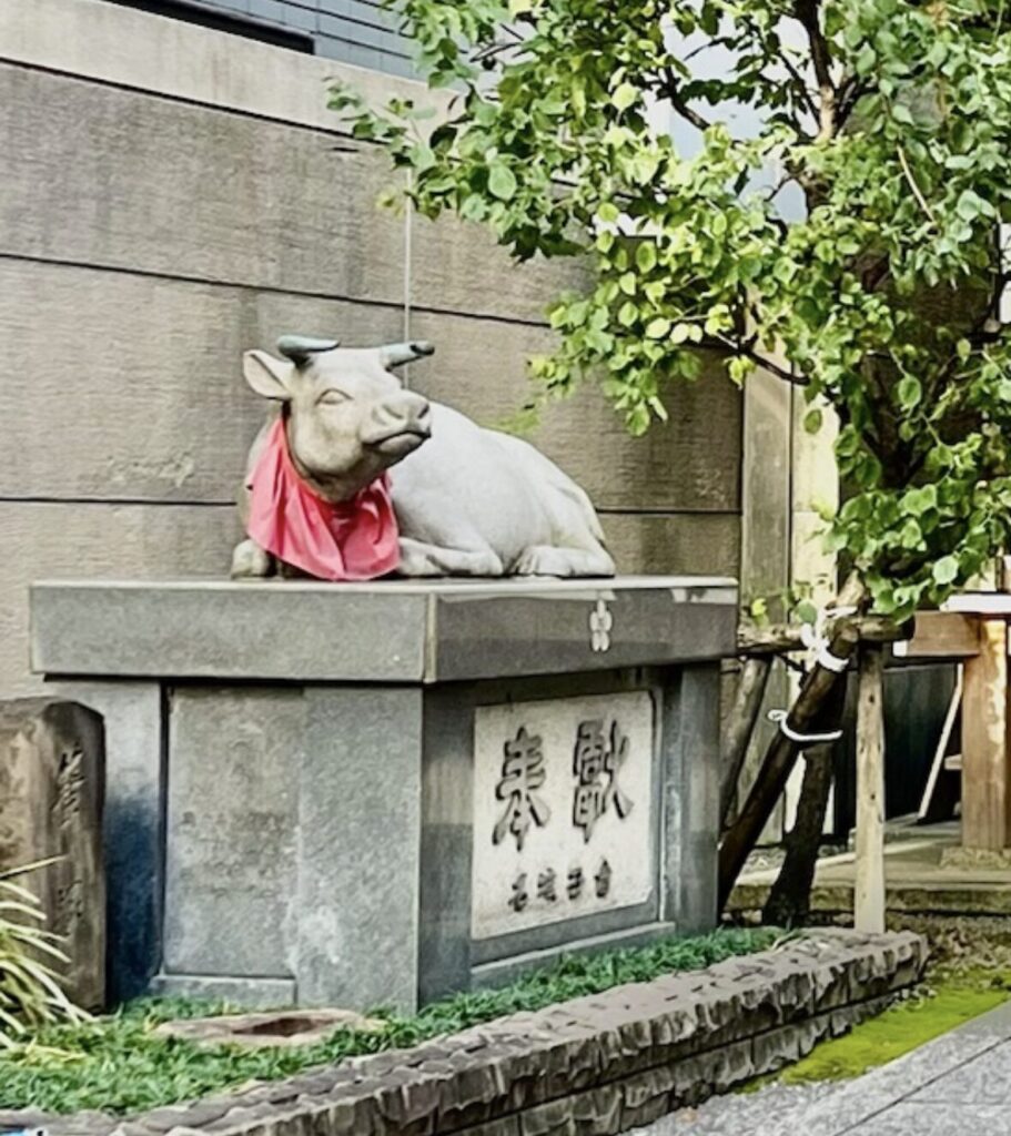 天満宮には「撫で牛」と呼ばれる牛の像があります。
