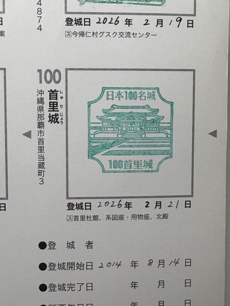 今回は、首里城のマグネットをお土産に購入し、日本100名城のスタンプも押してきました。